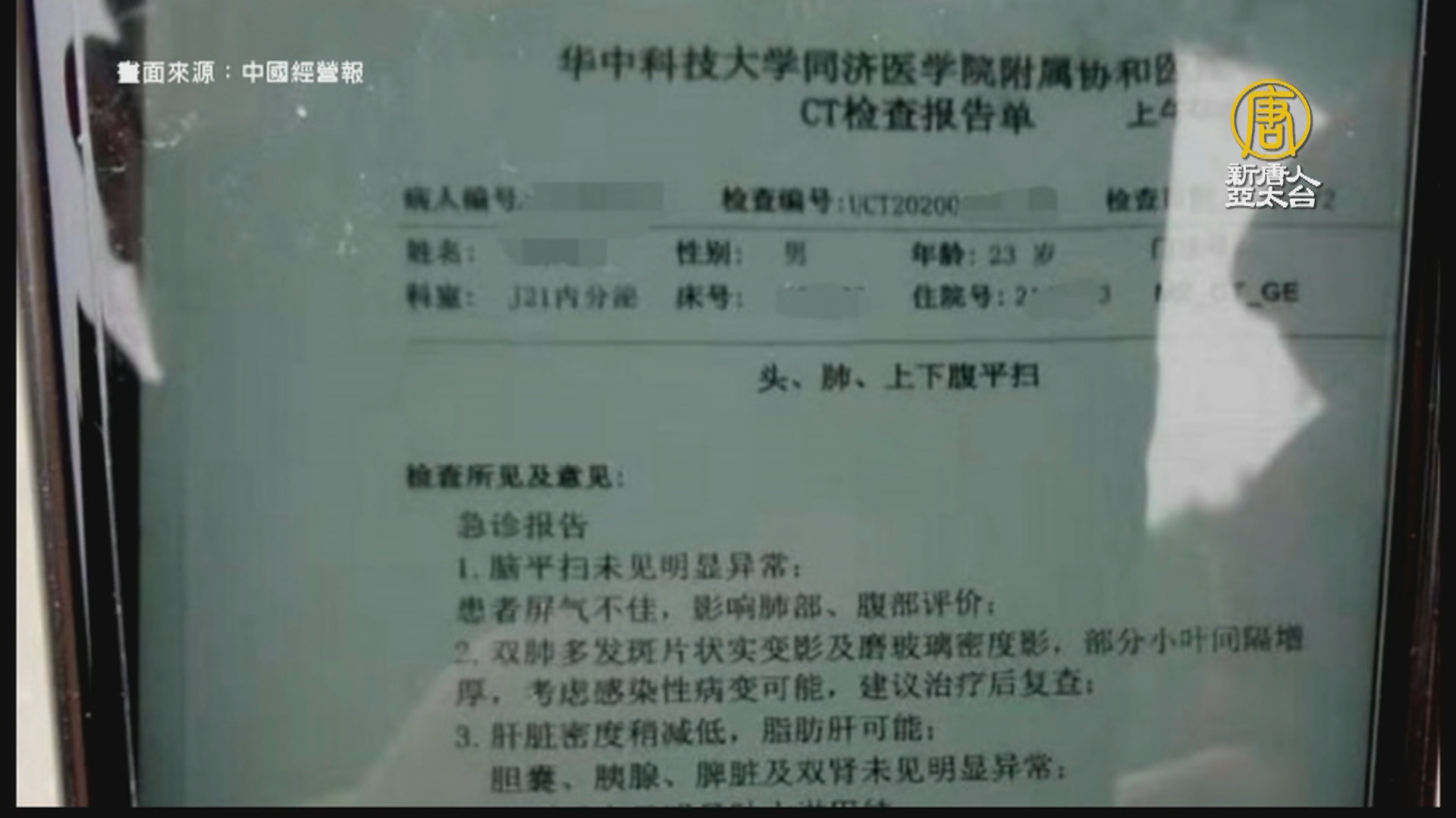 【新唐人亞太台 2020 年 01 月 07 日訊】湖北武漢爆發不明原因肺炎疫情,患者治療費用奇高,《中國經營報》報導,染上不明肺炎的病人,目前被集中到金銀潭醫院住院部。一名月薪5000元人民幣的病患,過去一週醫藥費及住院費就高達4.3萬元人民幣,相當於18.5萬台幣。另外,還有中國網民表示,家中有兩人感染不明原因病毒性肺炎,其中一人被送院,但院方卻不停要求在「病危通知書」上簽字,「現在已經出現器官衰竭。」不過,這名網友的微博帳戶隨後被刪除。