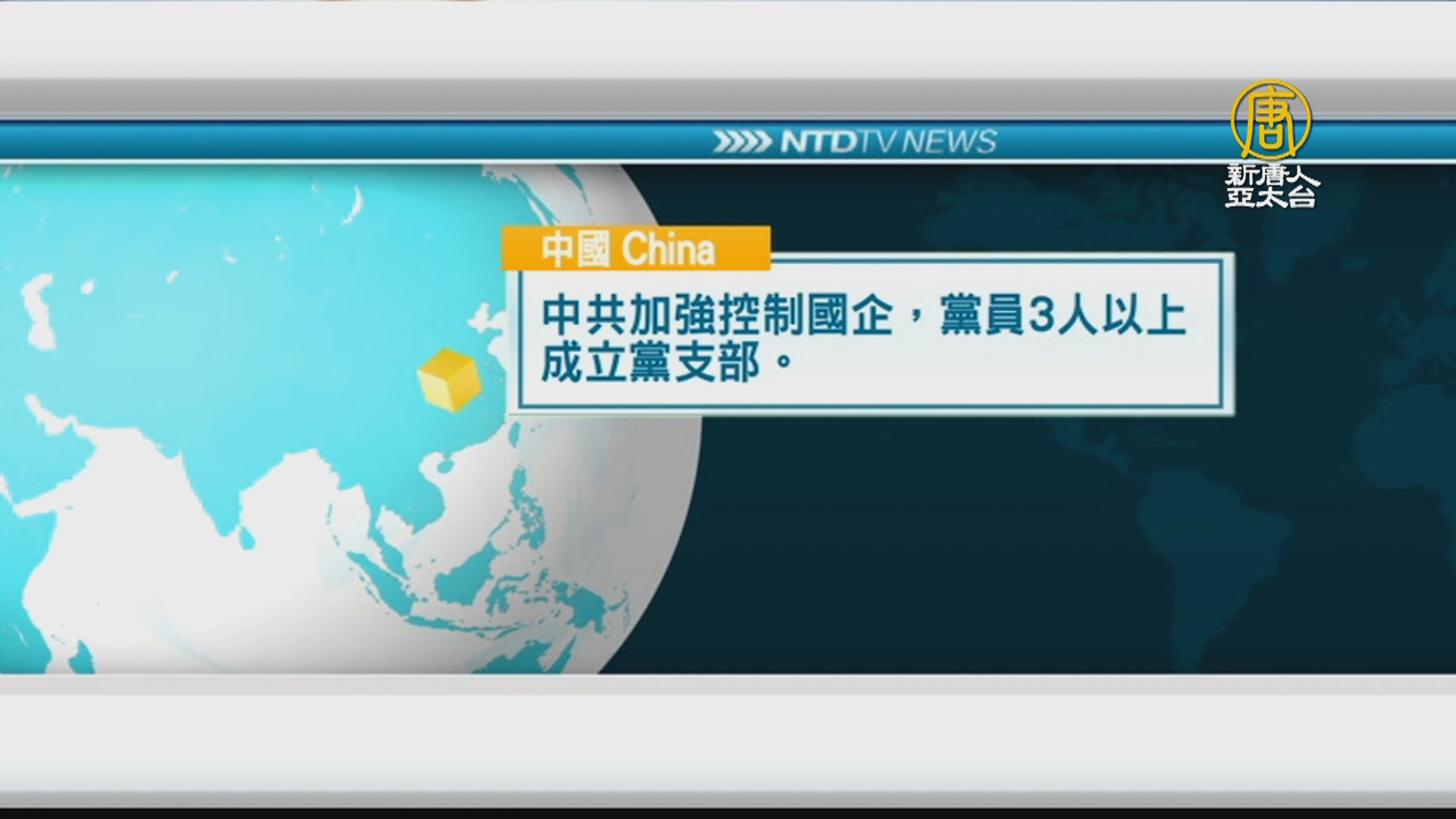 中共加強控制國企,黨員3人以上成立黨支部。