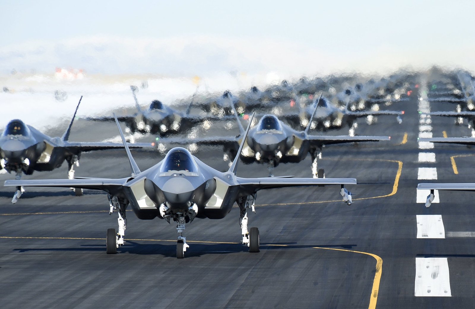 第419戰機聯隊在推特發布多張這52架F-35A戰機「大象走路」(elephant walk)的照片,也就是戰機近距離列隊,同步進行起飛前滑行;並發佈了戰機接續起飛的影片。