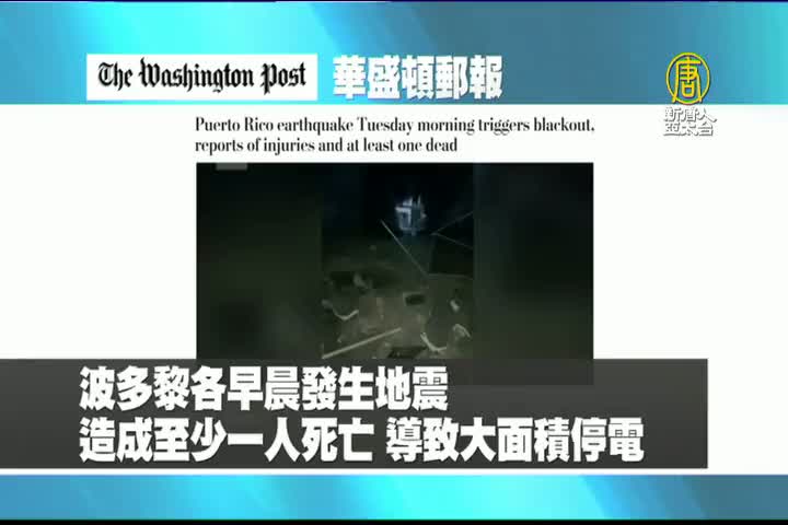 【新唐人亞太台 2020 年 01 月 08 日訊】首先來看到美國華盛頓郵報報導:波多黎各在當地時間早晨發生地震,造成至少一人死亡,導致大面積停電。