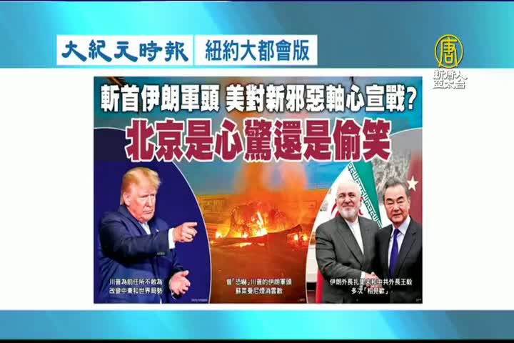 【新唐人亞太台 2020 年 01 月 08 日訊】接著看到大紀元時報紐約大都會版報導:斬首伊朗軍頭,美對新邪惡軸心宣戰?北京市心驚還是偷笑。