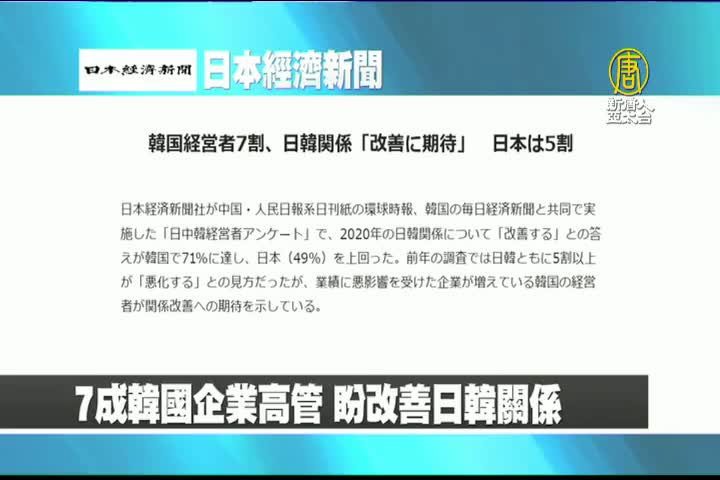 【新唐人亞太台 2020 年 01 月 08 日訊】來看到日本經濟新聞報導:7成韓國企業高管,盼改善日韓關係。