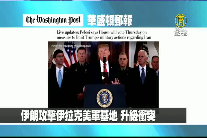 【新唐人亞太台 2020 年 01 月 09 日訊】首先來看到美國華盛頓郵報報導:伊朗攻擊伊拉克美軍基地,升級衝突。