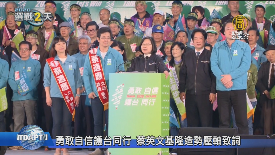 【新唐人亞太台 2020 年 01 月 09 日訊】倒數兩天,各政黨全力衝刺總統大選,民進黨晚間在基隆造勢晚會,總統蔡英文在剛剛進場,發表壓軸致詞,立刻帶您看到現場。