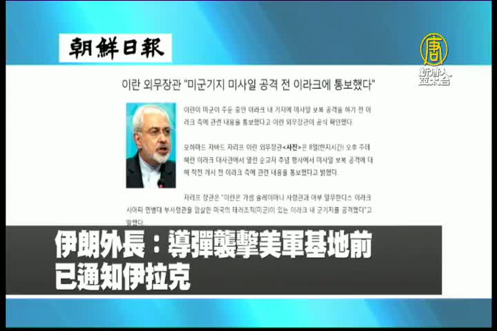 【新唐人亞太台 2020 年 01 月 10 日訊】來看到韓國朝鮮日報報導:伊朗外長表示,導彈襲擊美軍基地前已經通知伊拉克。