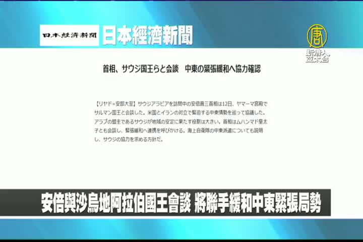 【新唐人亞太台 2020 年 01 月 13 日訊】日本經濟新聞,安倍與沙烏地阿拉伯國王會談,將聯手緩和中東緊張局勢。