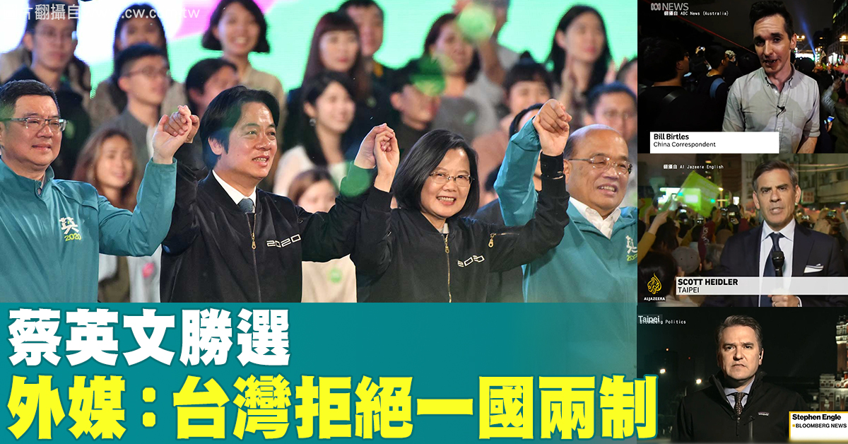 蔡英文勝選 外媒:台灣拒絕一國兩制