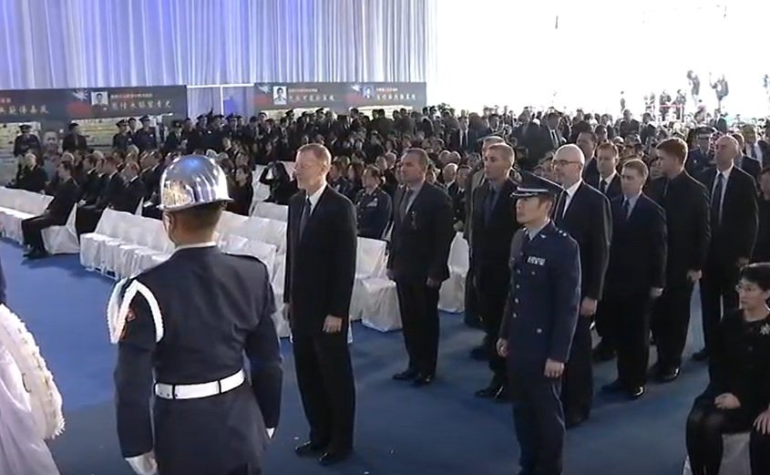 美國在台協會(AIT)台北辦事處長酈英傑率美國防部代表艾斯勒准將、休葛士官長等文武官員與祭美方軍職人員都著西裝至會場弔唁,向我殉職將士致敬。