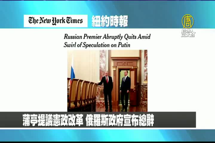 【新唐人亞太台 2020 年 01 月 16 日訊】首先來看到美國紐約時報報導:蒲亭提議憲政改革,俄羅斯政府宣布總辭。