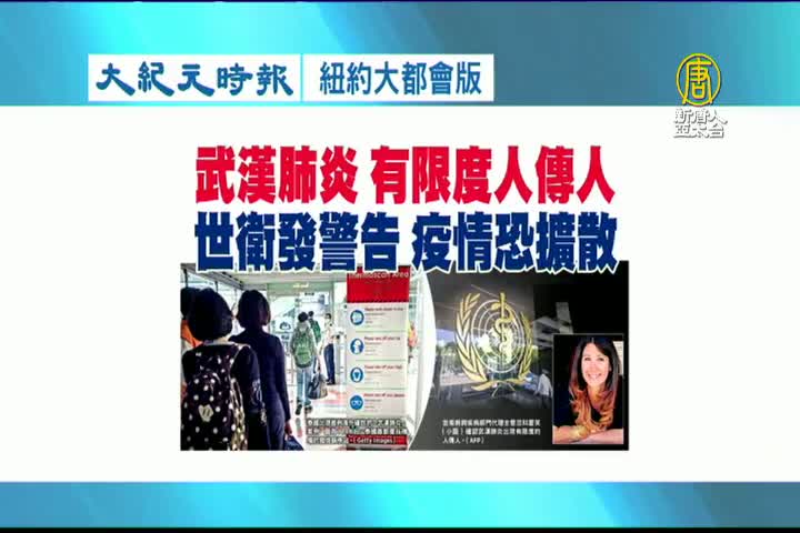 【新唐人亞太台 2020 年 01 月 16 日訊】接著看到大紀元時報紐約大都會版報導:武漢肺炎,有限度人傳人。世界衛生組織發警告,疫情恐怕擴散。