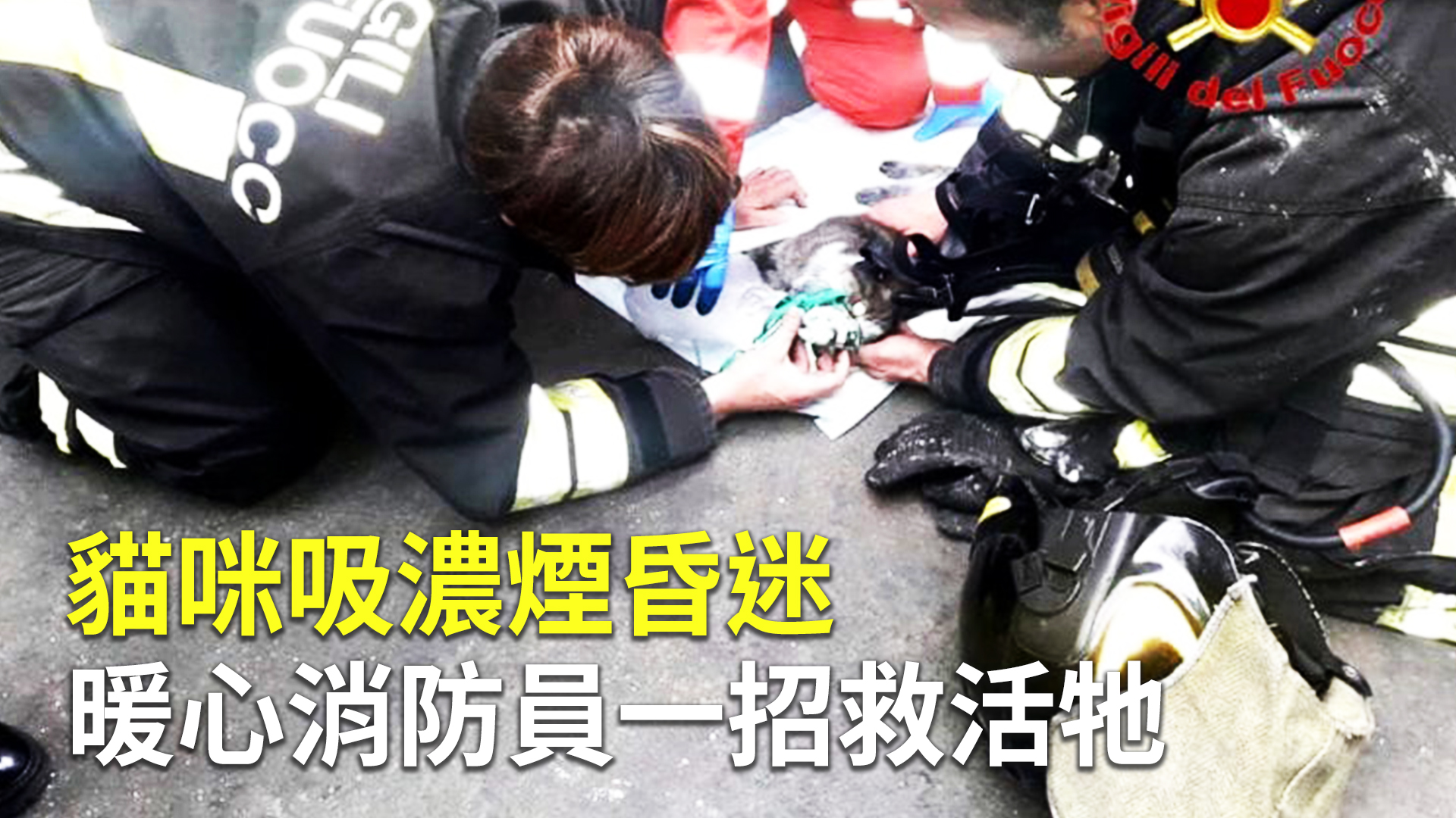 貓咪吸濃煙昏迷 暖心消防員一招救活牠