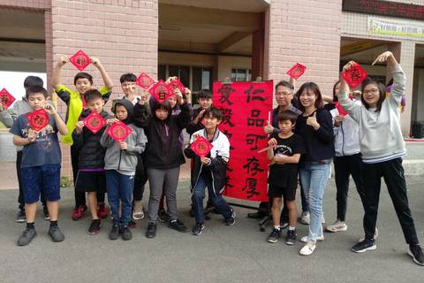 完成春聯書寫師生樂洋洋(台東仁愛國小提供)