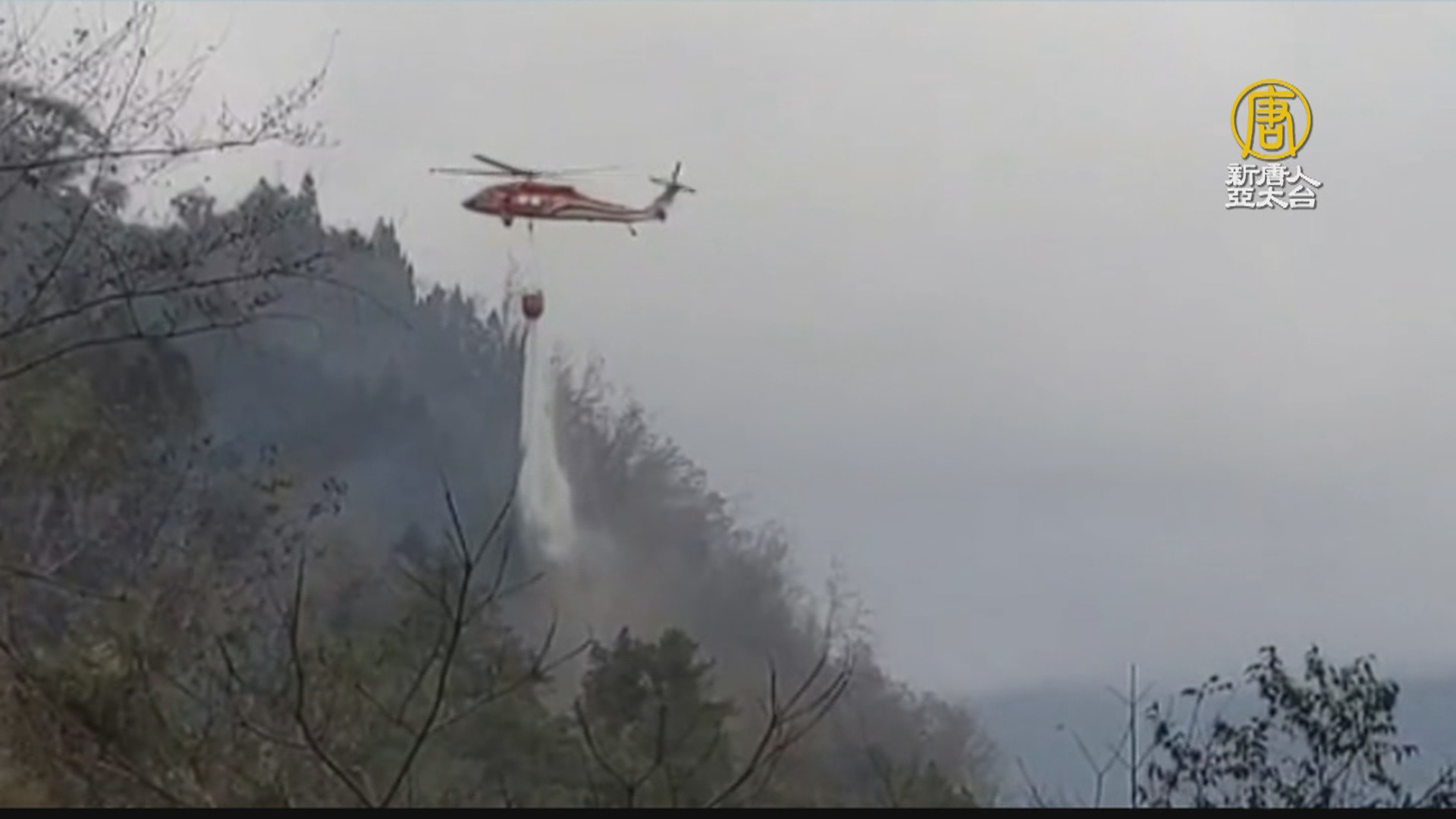 【新唐人亞太台 2020 年 01 月 20 日訊】台中梨山森林大火延燒24小時,台中市消防局人員跟空勤總隊黑鷹直升機,陸空聯合滅火,20號上午火勢獲得控制,東勢林管處初估,延燒面積至少3公頃,還好只燒毀林木,也不影響鄰近七家灣溪的櫻花鉤吻鮭。
