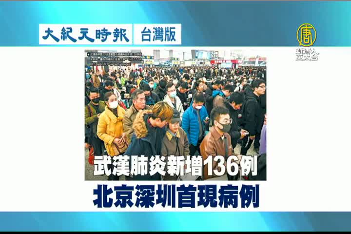 【新唐人亞太台 2020 年 01 月 21 日訊】繼續看到大紀元時報台灣版報導:武漢肺炎新增136例,北京、深圳首次出現病例。