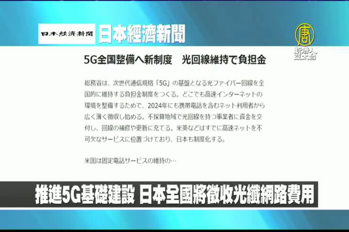 【新唐人亞太台 2020 年 01 月 21 日訊】來看到日本經濟新聞報導:推進5G基礎建設,日本全國將徵收光纖網路費用。