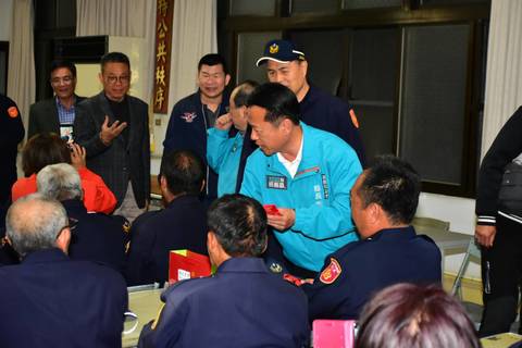 嘉義縣長翁章梁一一向在場同仁握手致意,並贈送年節小紅包。(嘉義縣警察局提供)