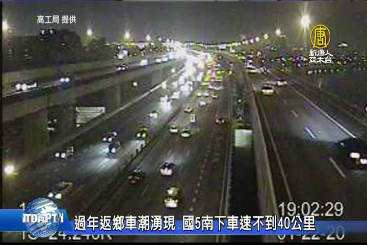 【新唐人亞太台 2020 年 01 月 22 日訊】新聞首先來關心,過年7天連假將在明天小年夜登場,今天傍晚,返鄉車潮已經逐漸湧現。往東部的國道5號南下坪林到頭城路段,車速不到40公里,交通部高公局表示,今年除夕夜前有兩天時間可以分散車流,所以周五除夕南下返鄉較不會壅塞,明天周四車流量估計會比今天還要少,國道交通型態會像週末假日,但主要會以南下車流為主,明天上午仍會出現壅塞情況,中午過後就會紓解。建議民眾如果不趕時間,可選擇下午出發,行車會較順暢、快速。
