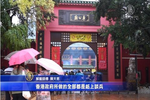 【新唐人亞太台 2020 年 01 月 27 日訊】香港大年初二是「車公誕」,新界鄉議局主席劉業強在車公廟為香港求得中籤。有解籤師傅認為,籤文顯示港府的作為是紙上談兵,一眾官員都會遭到報應。