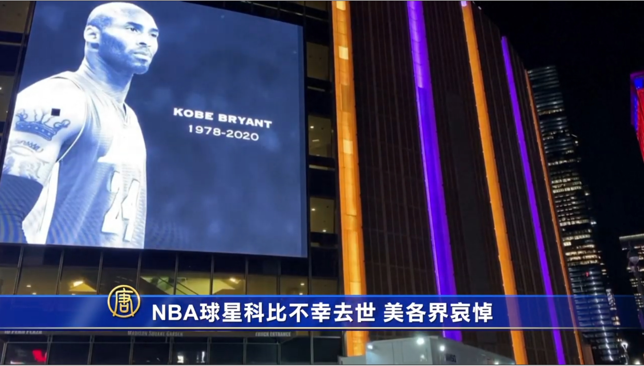 【新唐人亞太台 2020 年 01 月 28 日訊】當地時間1月26日,美國NBA球星柯比·布萊恩特在南加州的一場直升機墜機事故中不幸身亡,終年41歲。消息傳出,美國各界紛紛為這位傳奇巨星的突然離世表示哀悼。