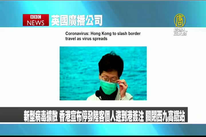 【新唐人亞太台 2020 年 01 月 29 日訊】再來是英國BBC報導,新型病毒擴散,香港宣布停發陸客個人遊到港簽注,關閉西九高鐵站。