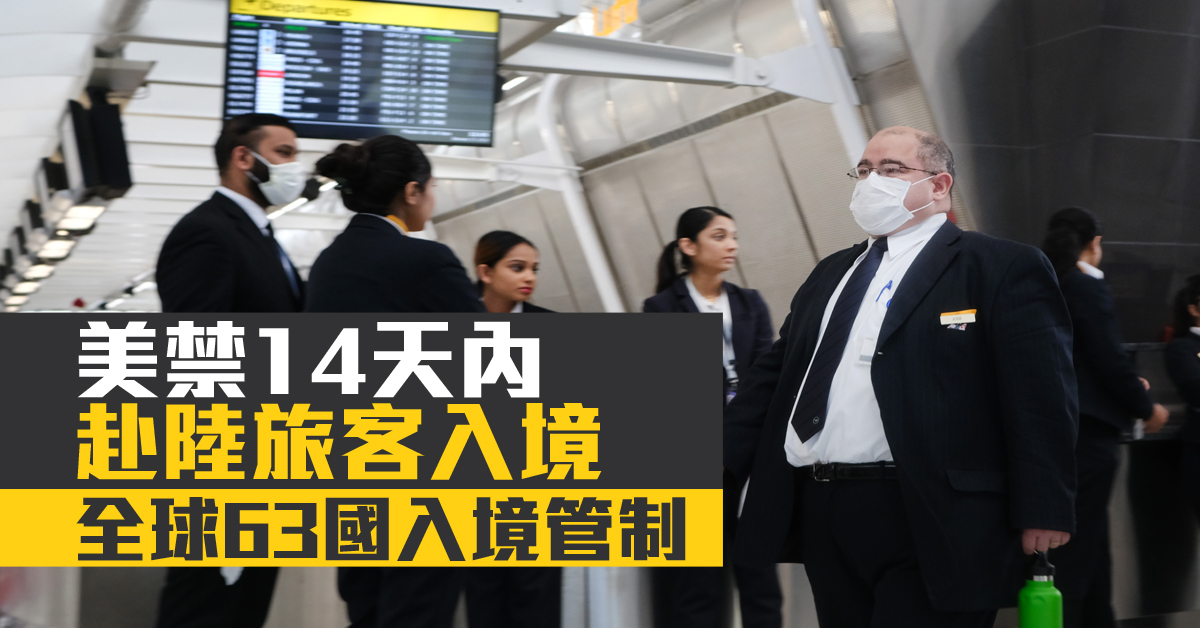美禁14天內赴陸旅客入境 全球63國入境管制