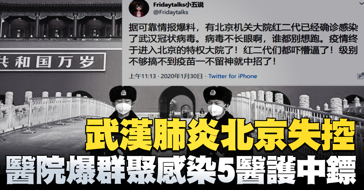 武漢肺炎北京失控 醫院爆群聚感染5醫護中鏢