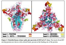 李龍騰說,「1月31日9名印度專家做的研究,這次病毒確實是百分之八九十跟原來SRAS病毒非常像;不太像的是,為什麼突然有四個點呢?好像黃色四個點,就是我們說的spike protein,就是穗狀蛋白質,這四個點是被植入進去的。後來他們自己的人否認,說這不是、這是隨機突變。其實(哪有)那麼巧的事,每一隻病毒上都有隨機突變的可能性,所以這九個(印度)科學家就馬上發表出來說,他們發現這是相當恐怖的一件事,不過昨天(3日)晚上(印度論文)被迫撤掉了,撤掉當然後面,一定有相當的壓力,才會這樣做。不過已經秀出來,所以大家已經知道說,這真的不是那麼簡單的一隻病毒。」(延伸閱讀:印學者發現武漢病毒有類愛滋基因 引發人工編輯疑雲)