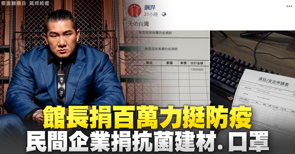 館長捐百萬力挺防疫 民間企業捐抗菌建材.口罩