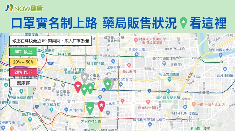 登入即時口罩地圖頁面,就能立刻知道藥局口罩銷售狀況。(圖/NOW健康製作)