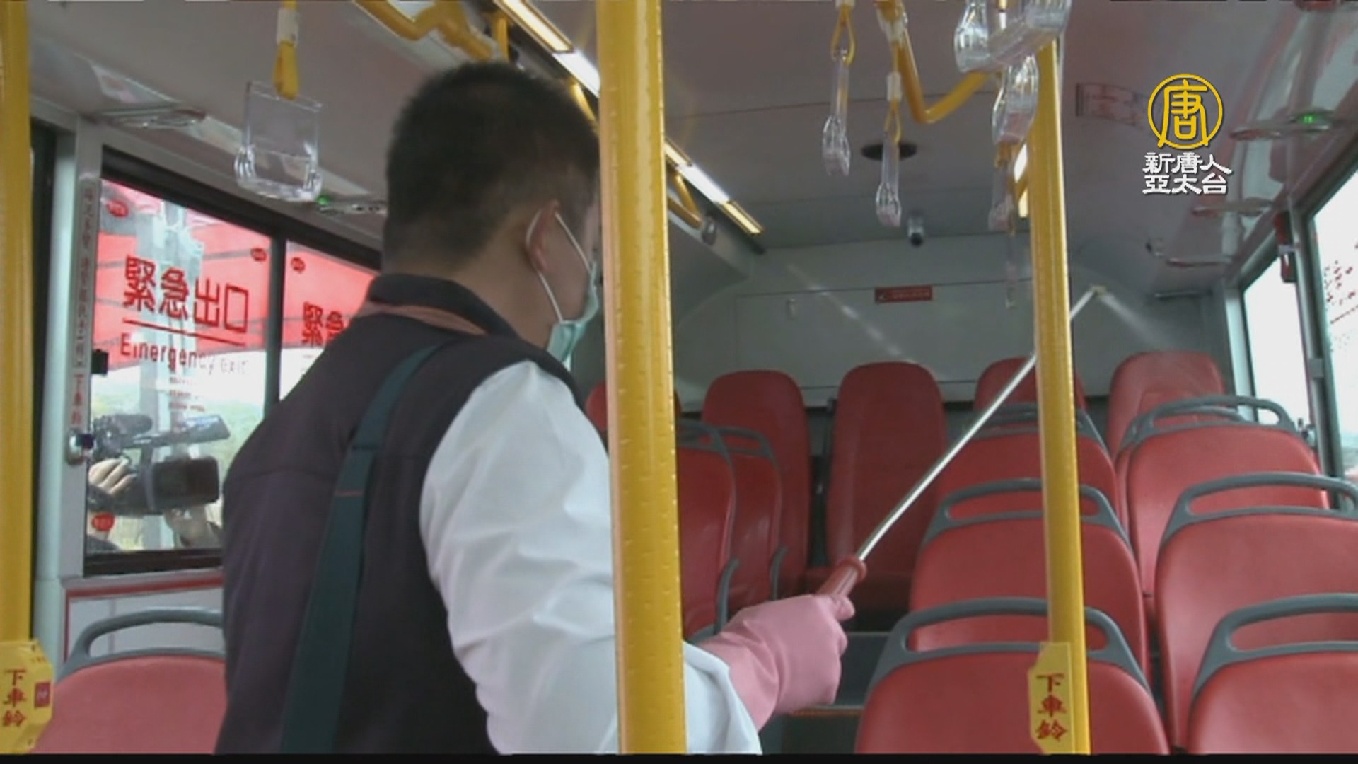 針對公車拉環、下車鈴,乘客常碰到的地方,加強用酒精消毒,司機也要嚴格把關。