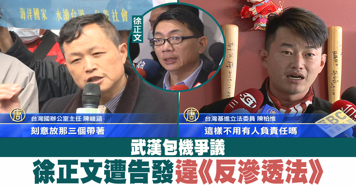 滯留中國武漢台灣人的首批247人包機3日抵台,但包機抵台後卻多出3名不在原本確認名單中的乘客,甚至包含一名武漢肺炎確診病例,引發爭議,台灣國辦公室主任陳峻涵質疑,湖北台灣同胞返台救援會長徐正文接受中共委託,意圖影響國家安全,7日到北檢告發徐正文,涉嫌違反《反滲透法》。