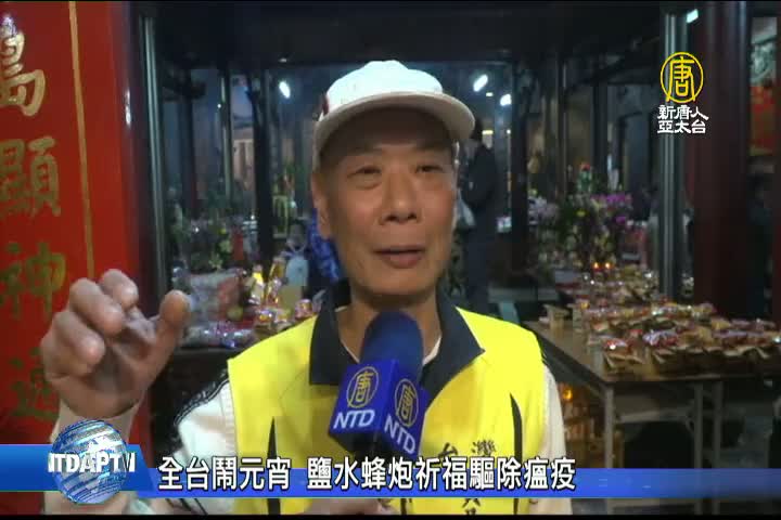 【新唐人亞太台 2020 年 02 月 08 日訊】今晚全台鬧元宵,來看到台南鹽水蜂炮,今年因為武漢肺炎發生,讓祈福驅除瘟疫的鹽水蜂炮更具意義。