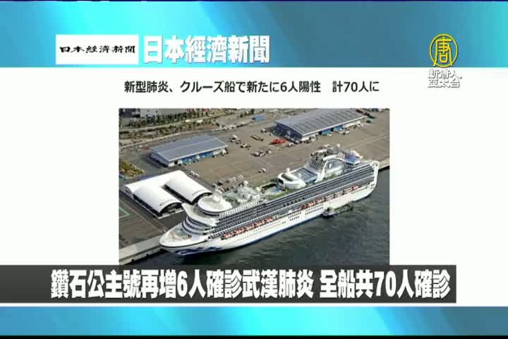 【新唐人亞太台 2020 年 02 月 10 日訊】來看到日本經濟新聞報導:日本鑽石公主號再增加6人確診武漢肺炎,全船共70人確診。