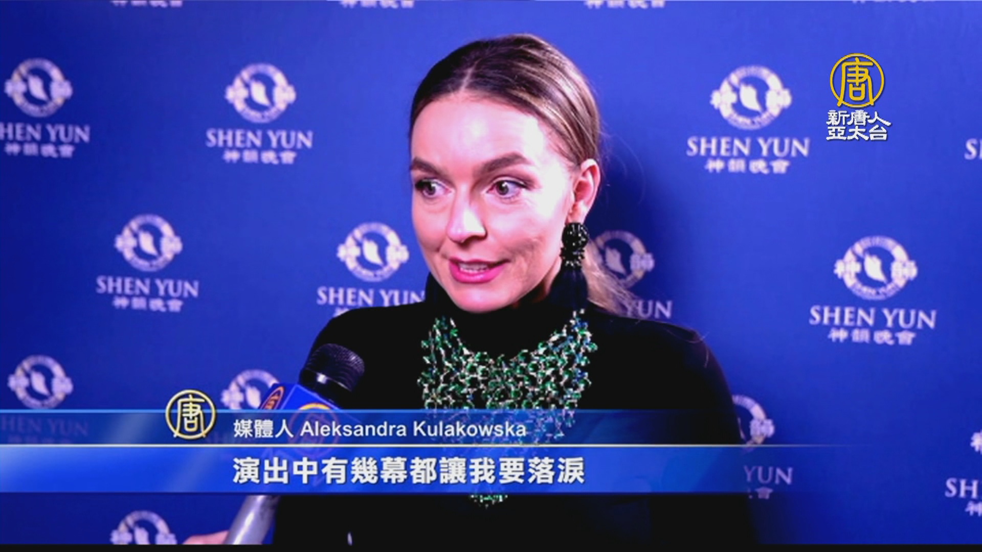 媒體人 Aleksandra Kulakowska:「演出中有幾幕都讓我要落淚,因為我能了解中國人所經歷的,我能夠感同身受。我的心在哭泣,因為這麼好的演出不能在中國演。神韻在弘揚中華文化,中國人目前卻仍在受苦,太令人心碎了。」