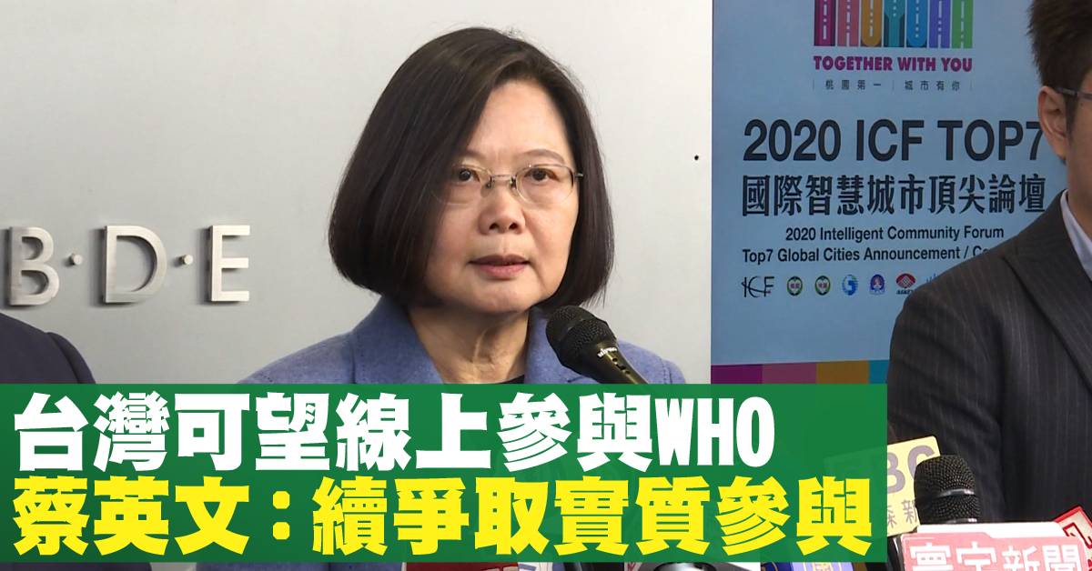 台灣可望線上參與WHO 蔡英文:續爭取實質參與