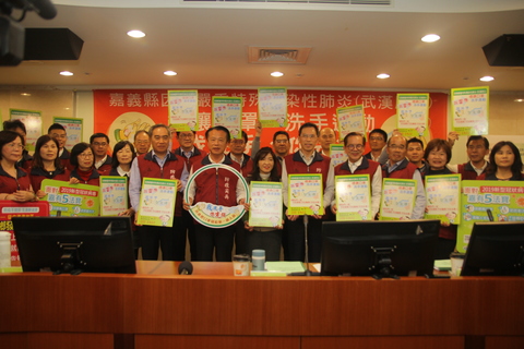 嘉義縣長翁章梁率領縣府一級主管,發起「禮讓口罩勤洗手」運動。(嘉義縣政府提供)
