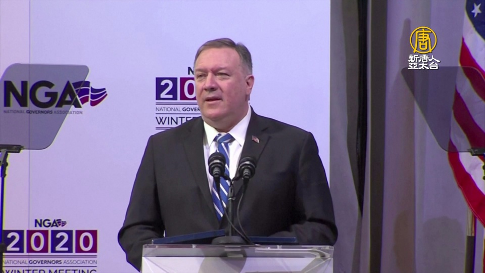 【新唐人亞太台 2020 年 02 月 10 日訊】美國國務卿彭佩奧,週六出席在華府舉行的「全美州長協會」會議時,發表演講,敦促美國各州州長,在與中國進行業務往來時,採取「謹慎態度」,防止中共滲透。