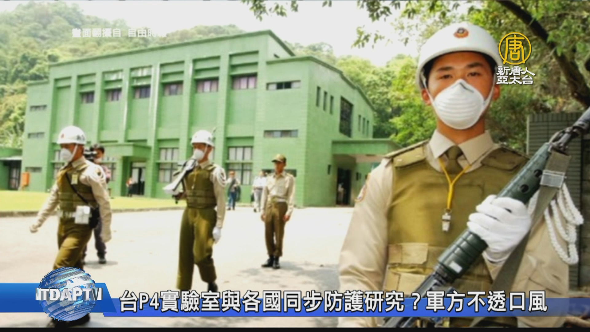 【新唐人亞太台 2020 年 02 月 11 日訊】武漢肺炎疫情持續擴散,各國都在加緊武漢肺炎病毒防護研究,今天有平面媒體報導,軍方已核定軍醫局提出的國軍生物防護研究計畫,將以5年為期,投入近5億元經費,報導說,台灣軍方所屬的P4實驗室與各國同步進行防護研究中,並且參與防疫單位的研究,讓檢測及判讀確診病例的速度能夠加速進行。對此,今天國防部發言人被問及相關問題時,仍不透露口風,只說有關消息,由中央流行疫情指揮中心回應。