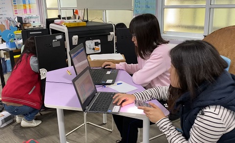 教師安裝好課程內容,將教育部補助的26台chromebook分送到每位學生手上。(嘉義縣教育局提供)