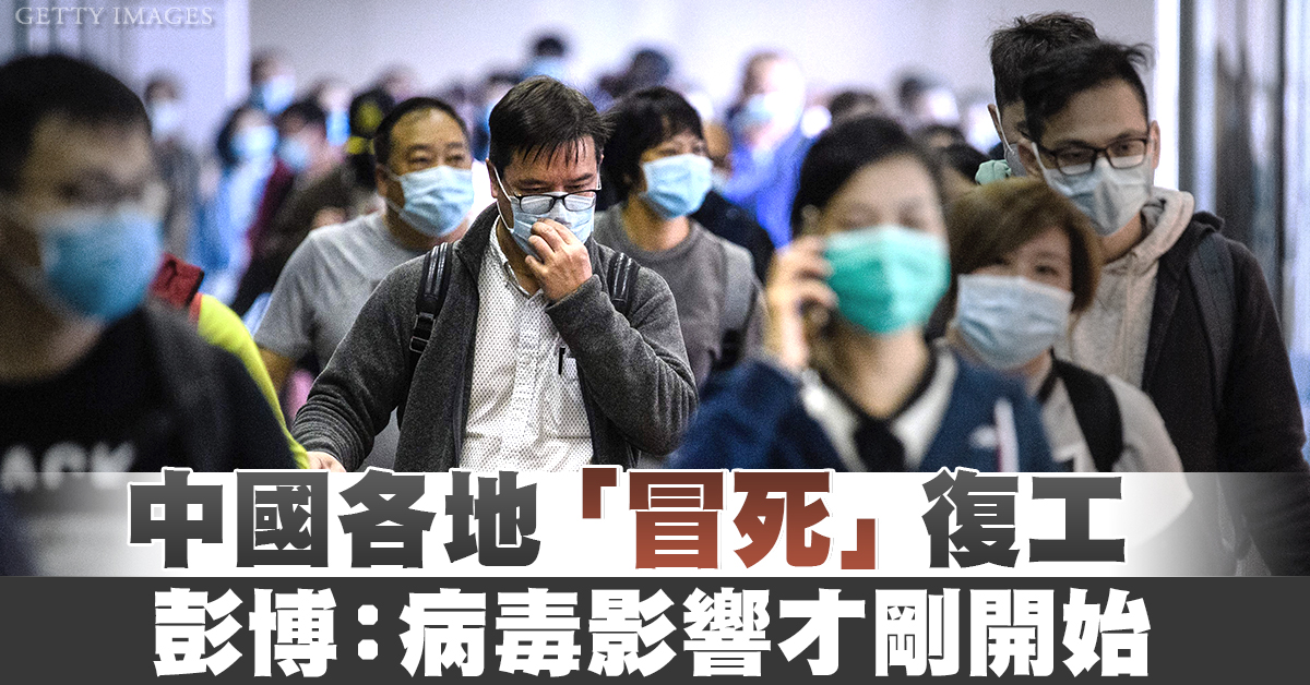 中國各地「冒死」復工 彭博:病毒影響才剛開始