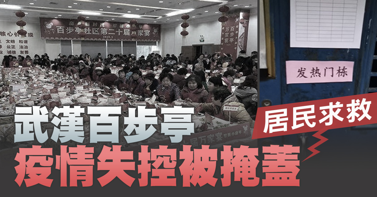 百步亭社區為大樓型住宅密集區,包括多個小區,住戶多達4萬戶,日前陸媒披露,該社區過半樓房都有人感染。該社區在1月18號舉行「萬家宴」,當時官方聲稱「疫情可控」,武漢卻在23號宣布封城。
