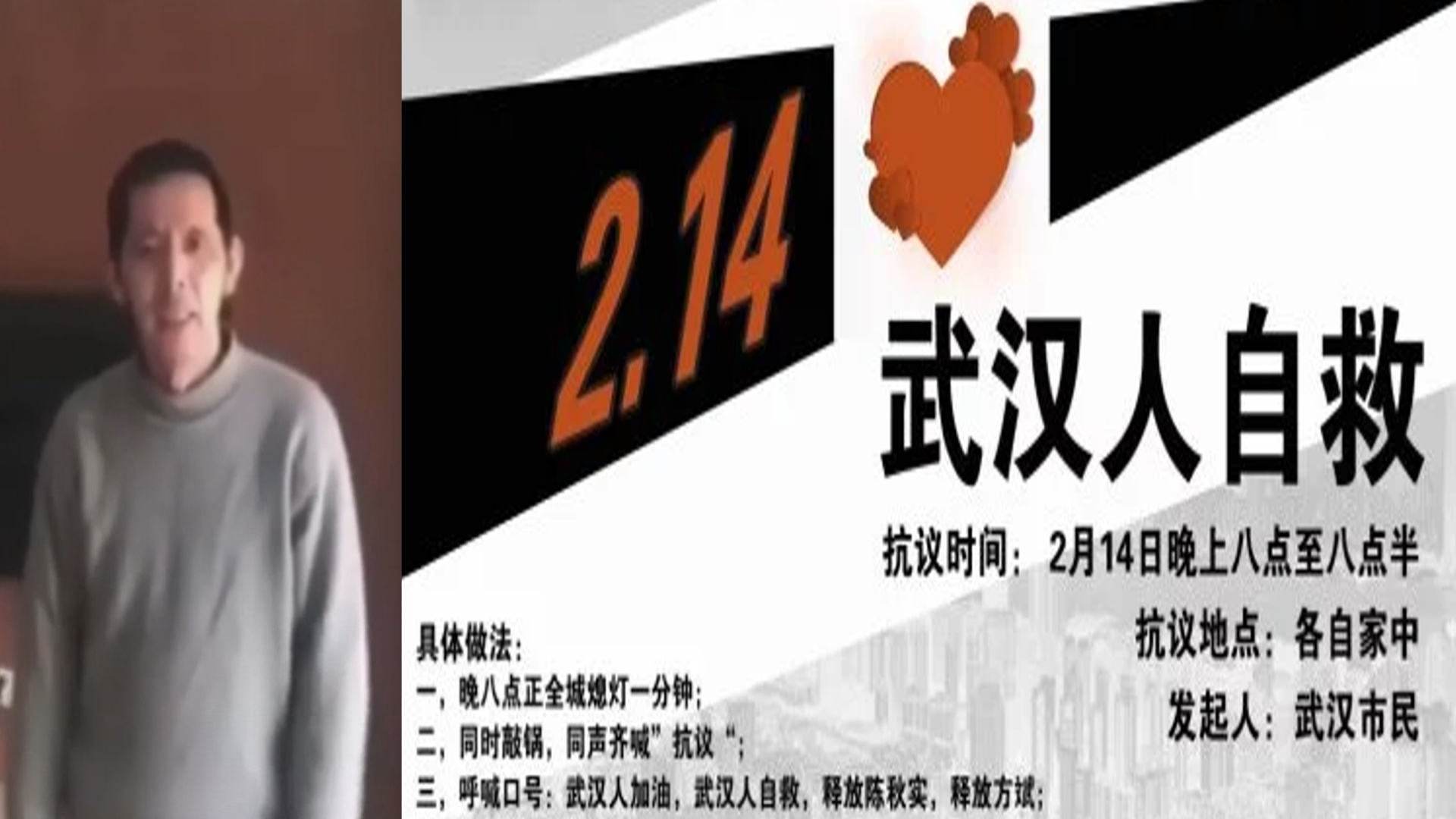 網友在網上發起「2.14武漢人自救行動」,相關文宣在社交媒體上流傳。2月14日晚八點至八點半間;抗議地點:各自家中。晚八點整全城熄燈一分鐘;呼喊口號:武漢人加油、武漢人自救、釋放陳秋實、釋放方斌。