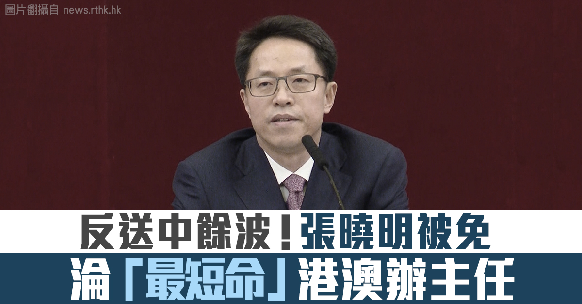 反送中餘波!張曉明被免 淪「最短命」港澳辦主任