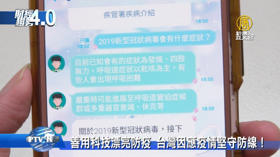 【新唐人亞太台 2020 年 02 月 15 日訊】台灣科技,因應肆虐全球的中共肺炎,繳出了漂亮的防疫成績單。總統蔡英文本週接見傑出資訊人才的得獎者,感謝科技產業壯大台灣的軟實力。蔡總統也提到,像是疾管署LINE官方帳號「疾管家」最近 就很熱門。