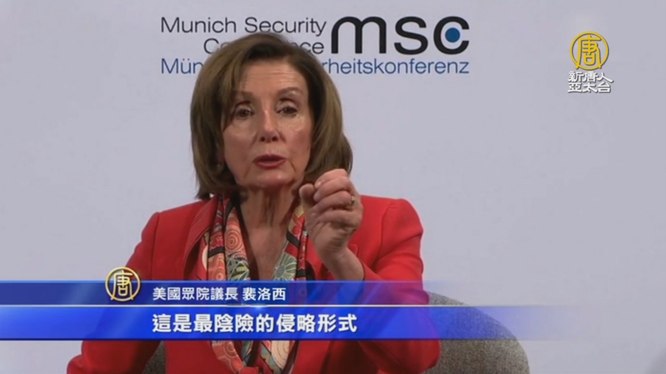 【新唐人亞太台 2020 年 02 月 15 日訊】歡迎回來。美國眾院議長裴洛西,罕見與美國總統川普,站在同一陣線。帶您看到,在週五開幕的慕尼黑安全會議上,裴洛西警告歐洲盟國,警惕中共利用華為5G技術進行陰險的侵略,呼籲不要選擇與華為合作。