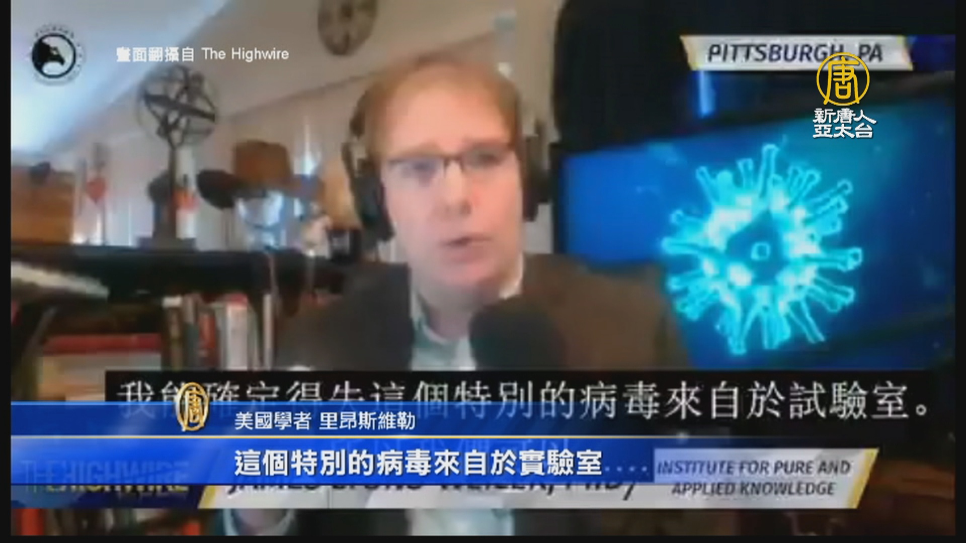 美國學者 里昂斯維勒:「我分析了這個(冠狀)病毒的基因組序列,將它與其他的冠狀(中共)病毒基因組序列進行了比較。我發現了一個奇怪的元素。它不該存在在病毒裡。它實際上是一種矢量技術,是一種在1998年第一次發表在《美國國家科學院院刊》的技術。矢量技術是一種被分子生物學家運用的技術,能將新的基因插入病毒和細菌當中。這個矢量技術叫做P-shuttle SN Vector。這是很不尋常的,在一個病毒裡發現一個能在人類中自然傳播的矢量技術序列。有一件事我們可以說,我能確定的是,這個特別的病毒來自於實驗室。」