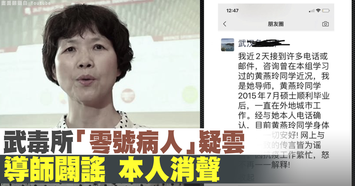 武毒所零號病人疑雲 導師闢謠 本人消聲