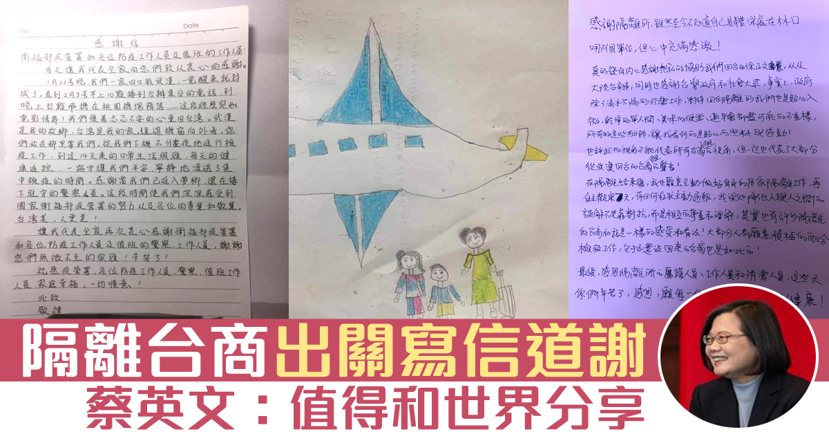 隔離台商出關寫信道謝 蔡英文:值得和世界分享