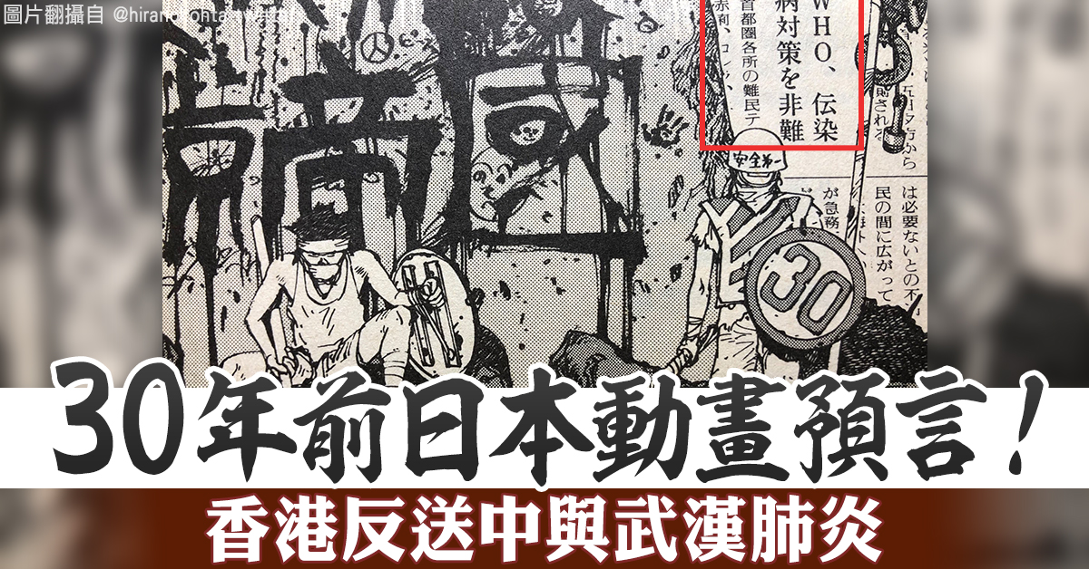 【新唐人亞太台 2020 年 02 月 19 日訊】正當香港反送中運動不斷進行與中共肺炎肆虐之際,有日本民眾發現,在30幾年前上映的,由日本漫畫家大友克洋創作的動畫電影《阿基拉》,似乎就預言了這兩個重大事件的發生。日本漫畫家平野耕太在去年7月發推文說,他看到香港抗議者手持圓形的交通標誌作為盾牌來使用,這讓他想到《阿基拉》裡有人使用類似的簡易武器那一幕。另外,放大圖片右上角的日本字可以看到,這像是「新東京」街頭的公告,上面寫著:「WHO對傳染病爆發的回應飽受批評。」這似乎也與目前WHO因中共肺炎疫情爆發而遭到非議的情況相吻合。