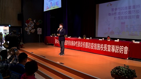 台中市長 盧秀燕:「防疫期間,不管是中央或地方,它隨著疫情規定它會有不同的一些措施規範出來,那我們也一定要讓學校確實瞭解跟遵守,所以這段時間學校準備的差不多了,不過呢我們一而再再而三,總是準備工作做得稍為過一點點,多一點或重覆都沒有關係,務必要確保確保讓大家安心,然後整個防疫作業盡量要做到周密。」